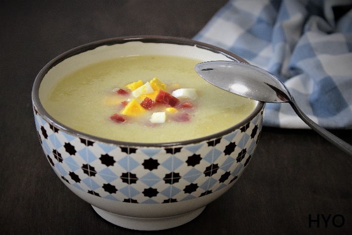4. Sirve caliente en plato sopero o cuenco, decorando con unos trocitos de jamón y huevo duro.