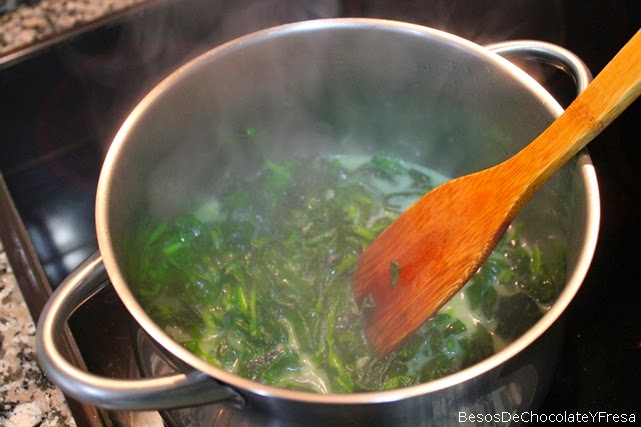 We add to the pot once they have depleted spinach, 1/2 cup of water and milk and two cheeses. Leaving do.