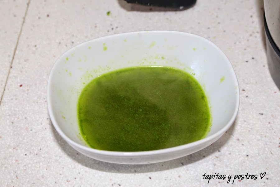 Ahora retiramos parte del caldo, medio vaso mas o menos.