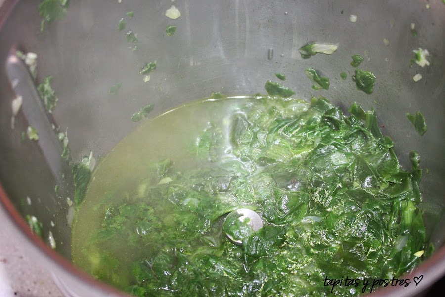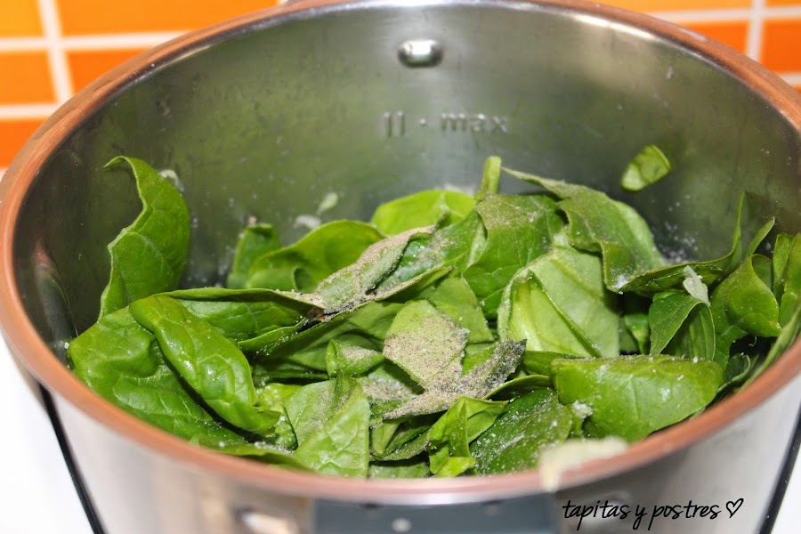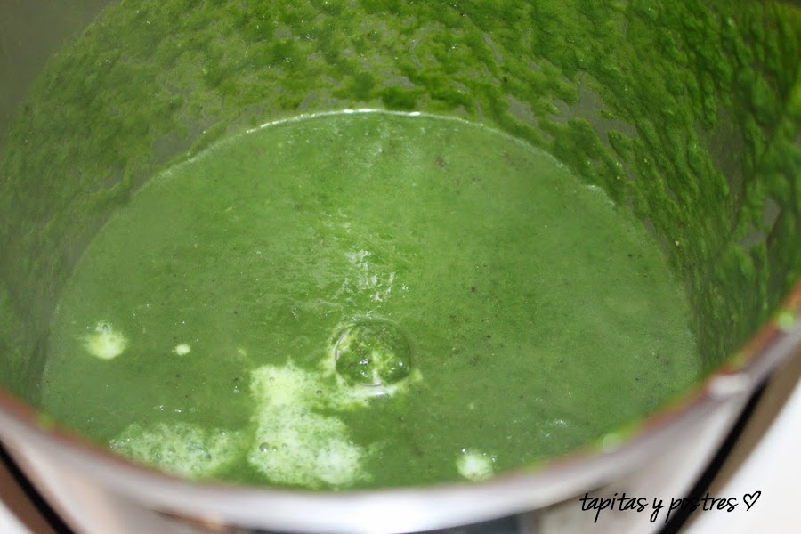 Dejamos que baje la temperatura del vaso y trituramos las espinacas. Agregamos la leche evaporada y volvemos a triturar de nuevo hasta que nos quede una textura cremosa.