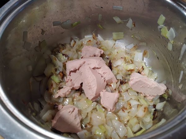 Echar el foie gras troceado y cubrir con el caldo del puchero (o de pollo) llevando a ebullición durante unos minutos.