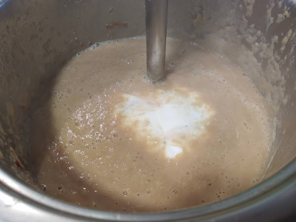 Retirar del fuego y pasar con la batidora de forma que quede una crema lo más fina posible.