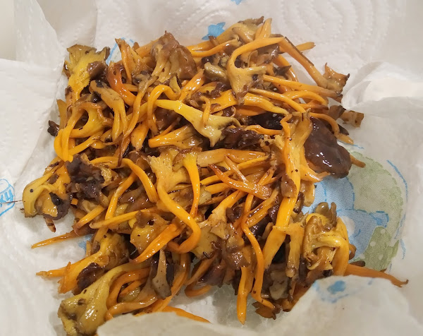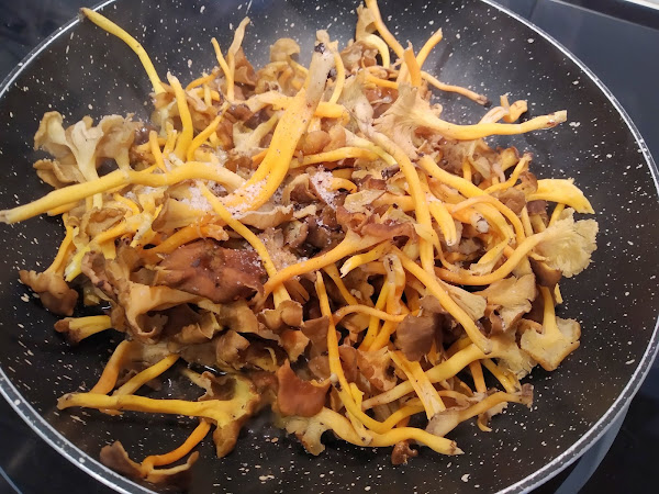Por cierto, adoro las setas y aún puedo encontrarlas en los mercados y puestos de confianza, entre ellas una pequeña y aromática seta, la llamada trompeta amarilla. ¿Sabían sus múltiples nombres? Cómo angula de monte (debido a su pequeño tamaño), gula de monte, rebozuelo anaranjado o amarillento. En catalán se le conoce como camagroc (pie amarillo), bolet de trompeta o rossinyolic (por su semejanza con el rossinyol o C. cibarius pero de menor tamaño). En euskera se le llama Salsa perretxiko hori y en gallego Trompeta marela.