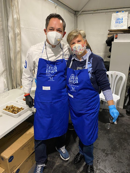 Gracias a ellos aprendí ésta receta, una genialidad de éste gran cocinero malagueño. Tuve la fortuna de que me llamara María pidiéndome que acompañara a Pepo en el show cooking de la última feria de gastronomía “Sabor a Málaga” que tuvo lugar hace unos meses. Ella no podía ir y fue un honor para mí ser su “pinche de cocina”.