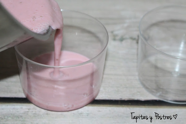 Vertemos la mezcla en los vasitos. Y dejamos enfriar.