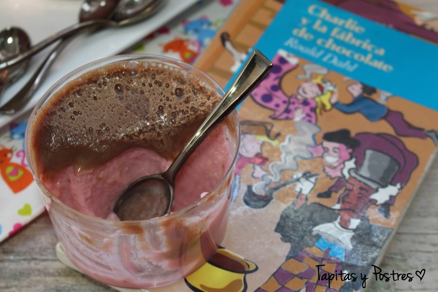 A mi me parece una iniciativa estupenda, así que en cuanto pude, me dispuse a buscar una receta que me sirviera. Al principio estaba algo bloqueada, no se me ocurría nada. Recurrí a algunas amigas y a mi hermana para que me dieran ideas. Mi hermana que estaba leyendo el libro "Todo esto te daré" de Dolores Redondo, me dio ideas de algunos platos que aparecían en el libro, pero no me acababa de convencer, hasta que una mañana en el cole (ya sabéis que soy maestra), llegó a mi, de manera casual el libro "Charlie y la fábrica de chocolate" de Roald Dahl.