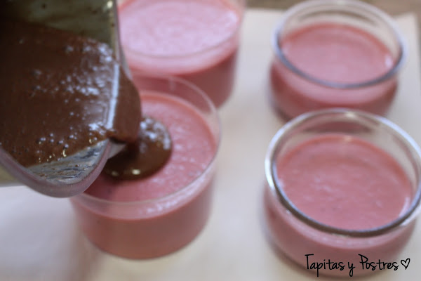 Vertemos encima de la crema de fresas. Dejamos enfriar.
