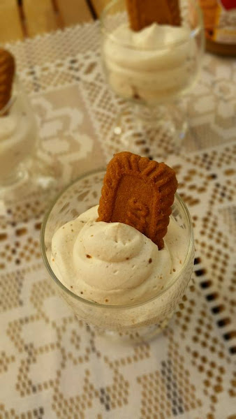 Ponemos la nata (crema de leche) en un bol o robot , le agregamos 2 cucharadas de crema de Lotus Crunchy y montamos con unas varillas eléctricas.