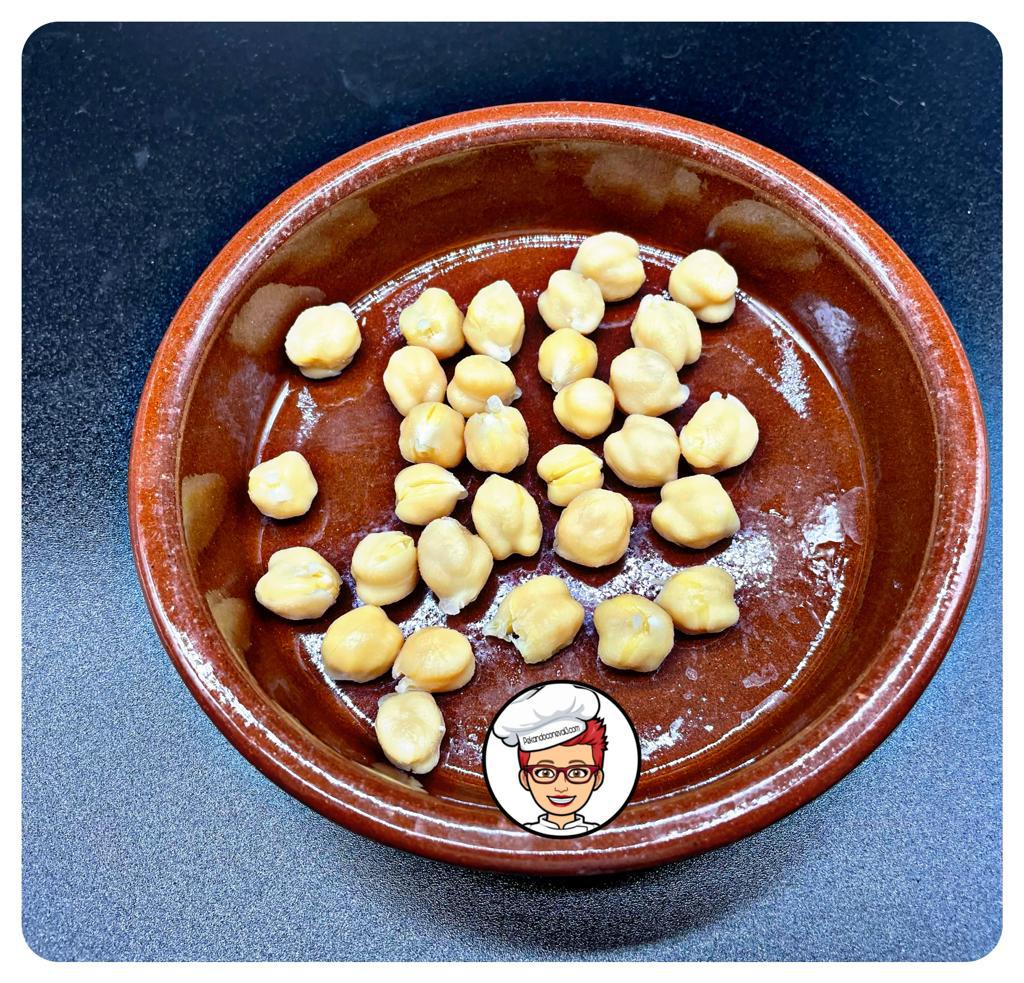 Como ya tenia los garbanzos listos a sido poner la crema en un bol, los garbanzos y he usado un poco de cebollino para decorar.