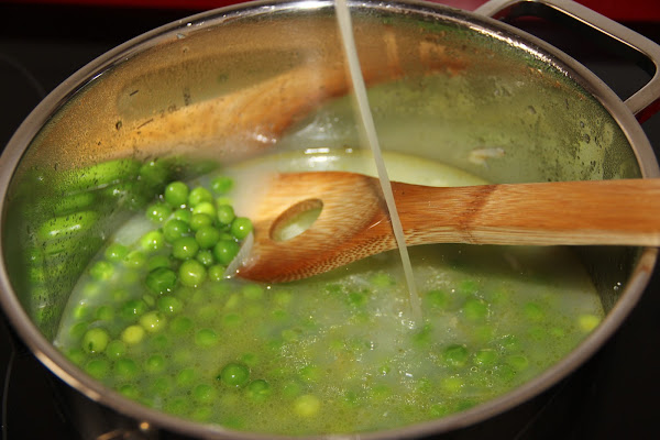 -1,200 grs. De guisantes frescos ( o la mitad de guisantes pelados o congelados)