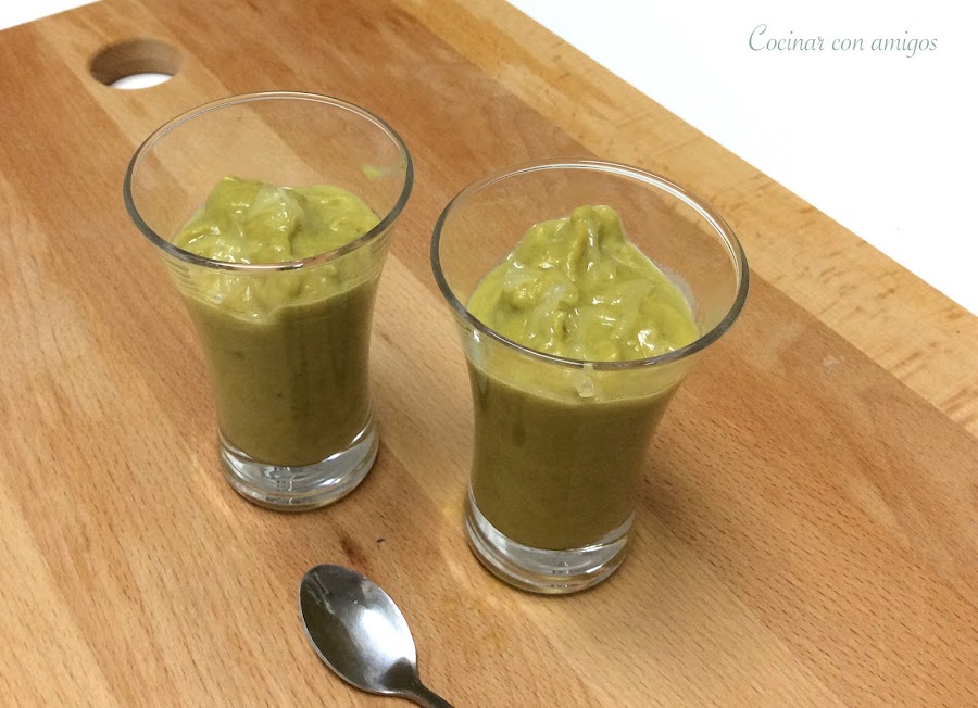 Hay un restaurante que nos gusta mucho en La Rioja y que ya hemos visitado varias veces. Antes de comer te sirven un pequeño aperitivo en vaso de chupito con una crema de verduras de temporada Y La última vez que estuvimos nos sacaron una crema de guisantes similar a la que os presento hoy aquí, estaba deliciosa.