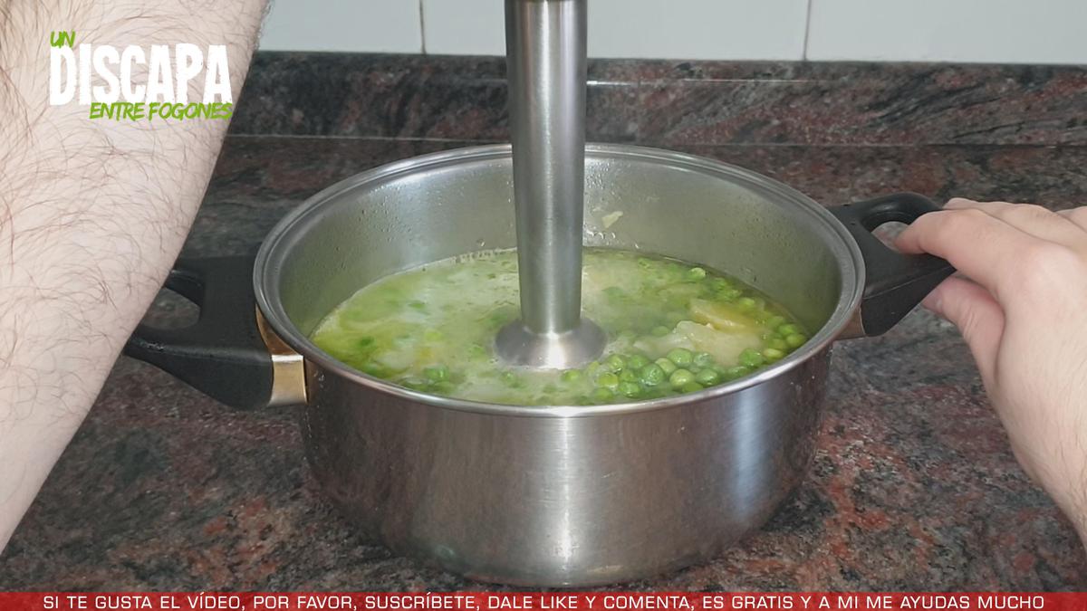 6Cuando han pasado 15 minutos, comprobamos si la patata está cocida, si está blanda precedemos a triturar. Si queréis, para que os quede una crema más fina, podéis pasarla por el colador. Yo no lo voy a hacer porque no me molesta.