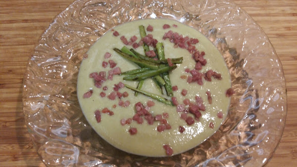 Triturar y pasar por el chino, por si quedase alguna hebra de las judías verdes.