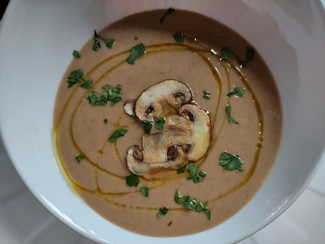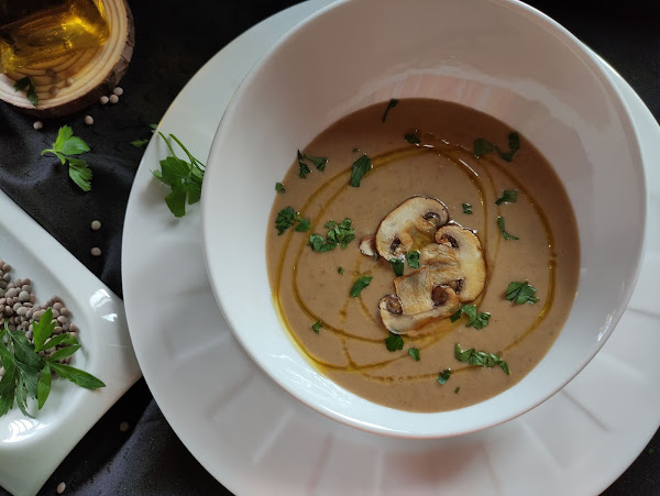 Sirve con un buen chorreón de aceite de oliva virgen extra, el perejil troceadito y los champiñones reservados.