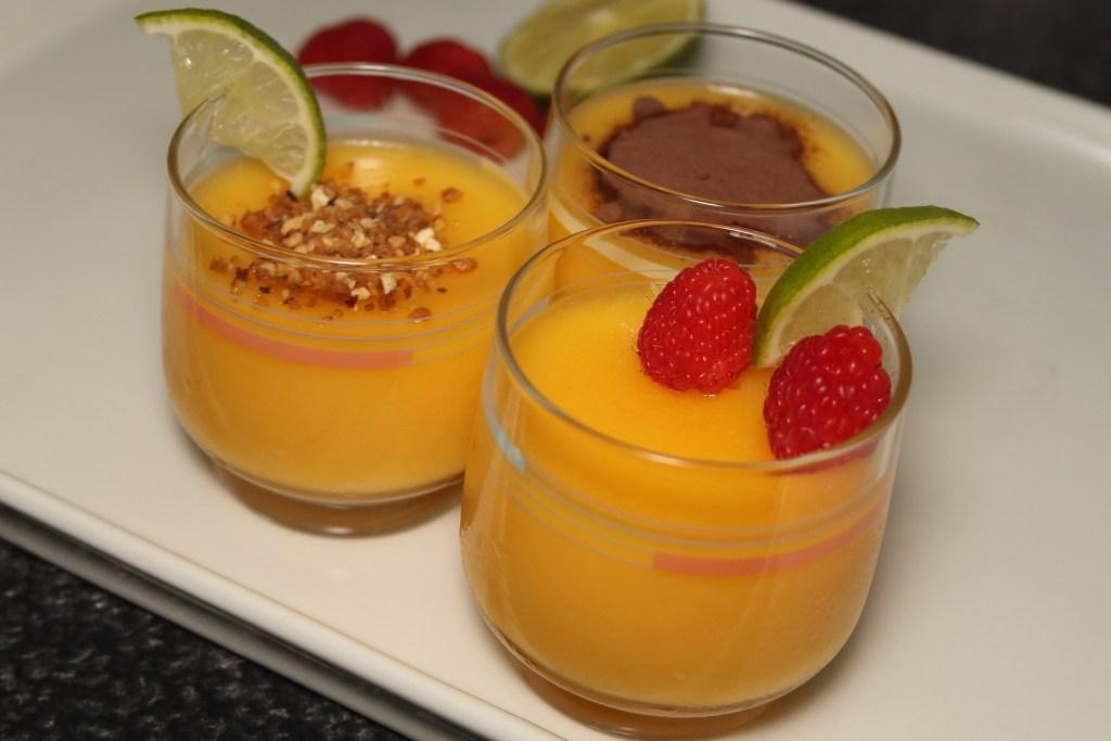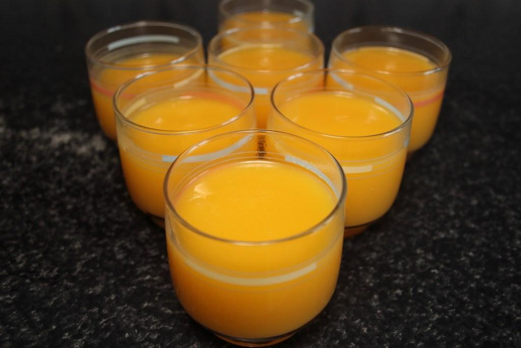 Pasamos la crema a los moldes elegidos y colocamos en cada uno unas cuantas grosellas (o los frutos, o la decoración que hayamos escogido). Dejamos enfriar.