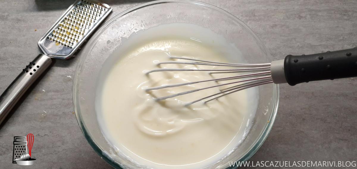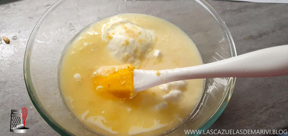 Mezclamos en un bol los yogures, el 1/2 bote de leche condensada, el zumo de un limón y su ralladura. Lo mezclamos muy bien. Con una cuchara o con una varilla se hace perfectamente. Probamos y si lo queremos más dulce, pues más leche condensada. A mi me gusta así.