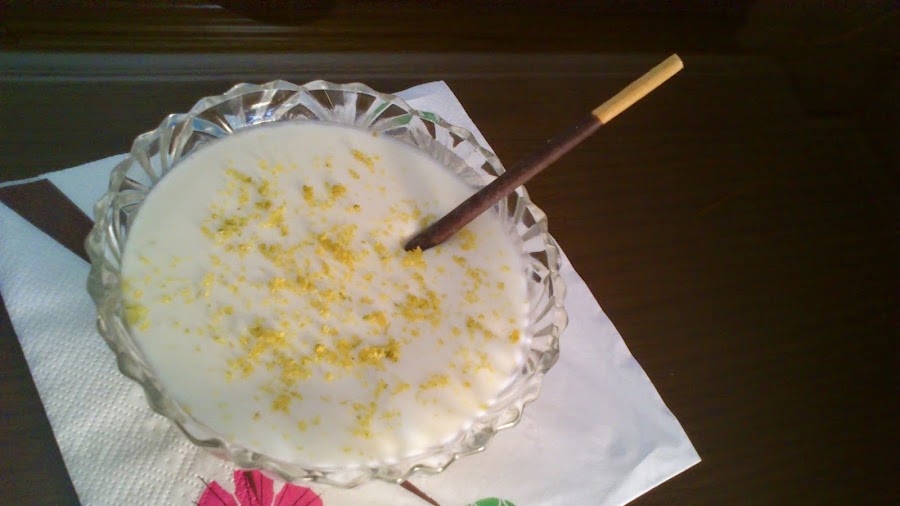 Servir en boles y dejar enfriar en la nevera unas cuantas horas. Decorar con barquillo y el resto de la ralladura.