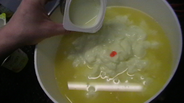 En un bol incorporamos el zumo, los 8 yogures y yo ademas le he añadido unas gotas de colorante amarillo en gel, para darle más intensidad de color.....
