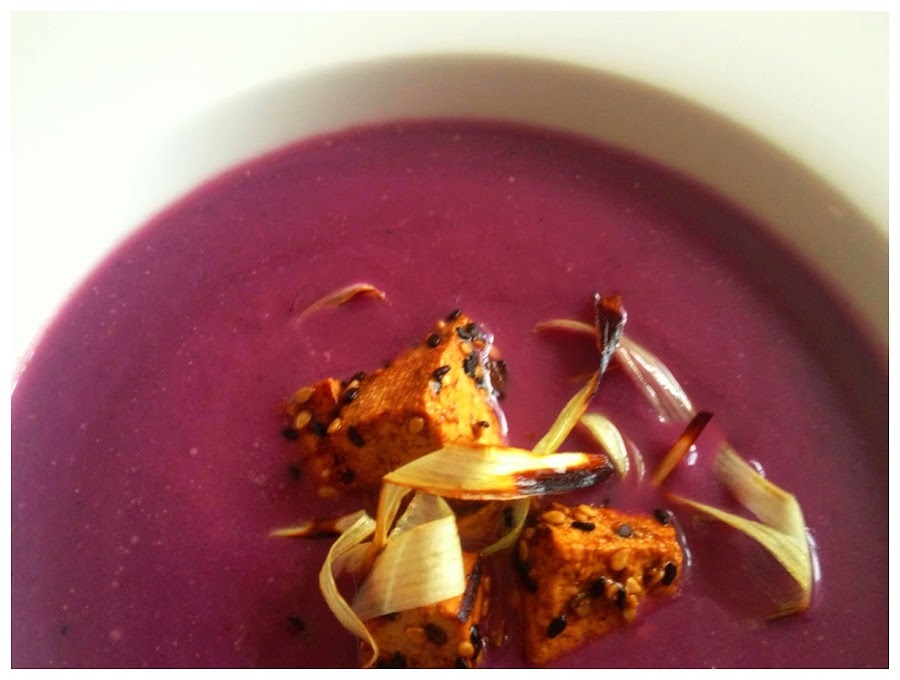 Emplatado: Ponemos en un plato sopero la crema y encima colocalos a modo de tropezones los trozos de tofu al teriyaki?
