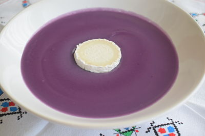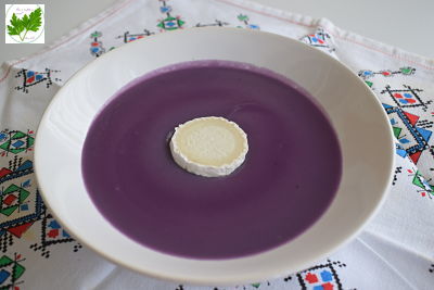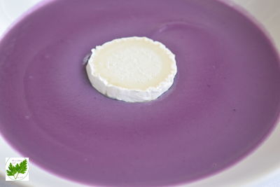 La receta de hoy es muy sencilla, combinamos lombarda, patatas violetas y la coronamos con queso de cabra aportando alegría y contraste al plato.