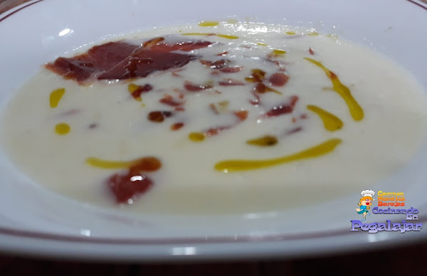 Grandiosa y exquisita Crema fría de melón que para estos días de calor viene perfecta, y la vamos acompañar con un Crujiente de jamón serrano, un buen chorreón de Aceite de oliva virgen extra y para darle chispa a la Crema, unas Pasas hidratada en Brandy.