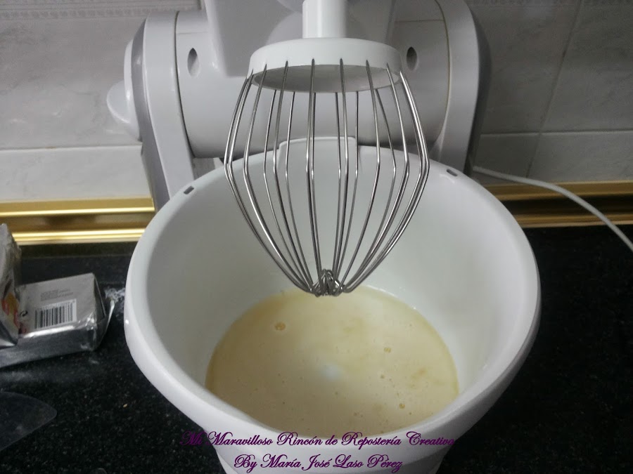 En primer lugar si utilizamos huevos frescos, tenemos que separar muy bien las claras de las yemas. Este proceso se tiene que realizar con cuidado, pues si nos queda algún resto de yema en las claras, por mucho que lo intentemos, éstas no montarán. Para ahorrar tiempo, esta vez he utilizado claras de huevo pasteurizadas, ahora con el calor que hace las recomiendo, porque de esta manera evitamos la salmonelosis.