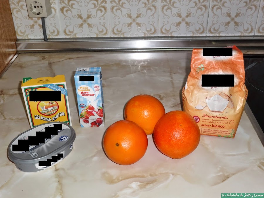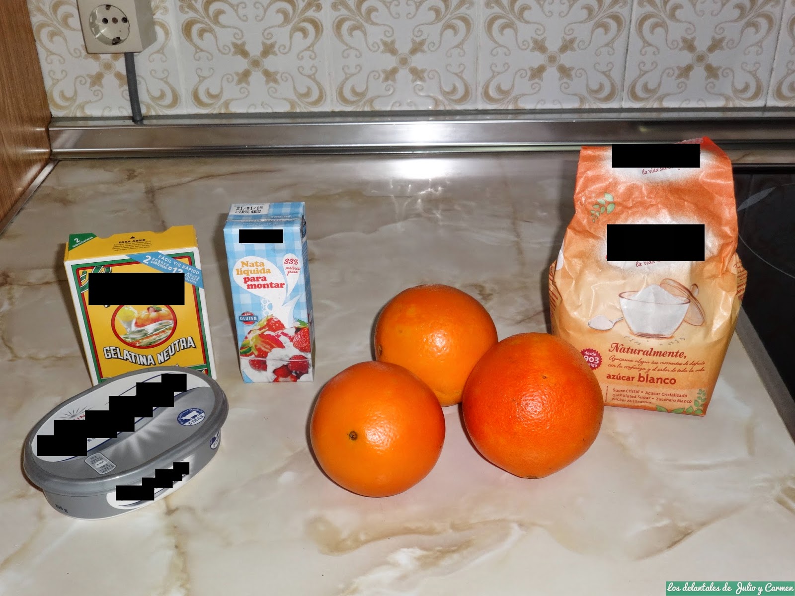 En un bol, batimos con las varillas el queso, la nata (crema de leche) y el azúcar. Cuando lo tengamos mas o menos bien mezclado todo, verteremos el preparado de la naranja y seguimos batiendo (con cuidado, ya que es muy liquido) hasta que queden todos los ingredientes bien integrados unos con otros.