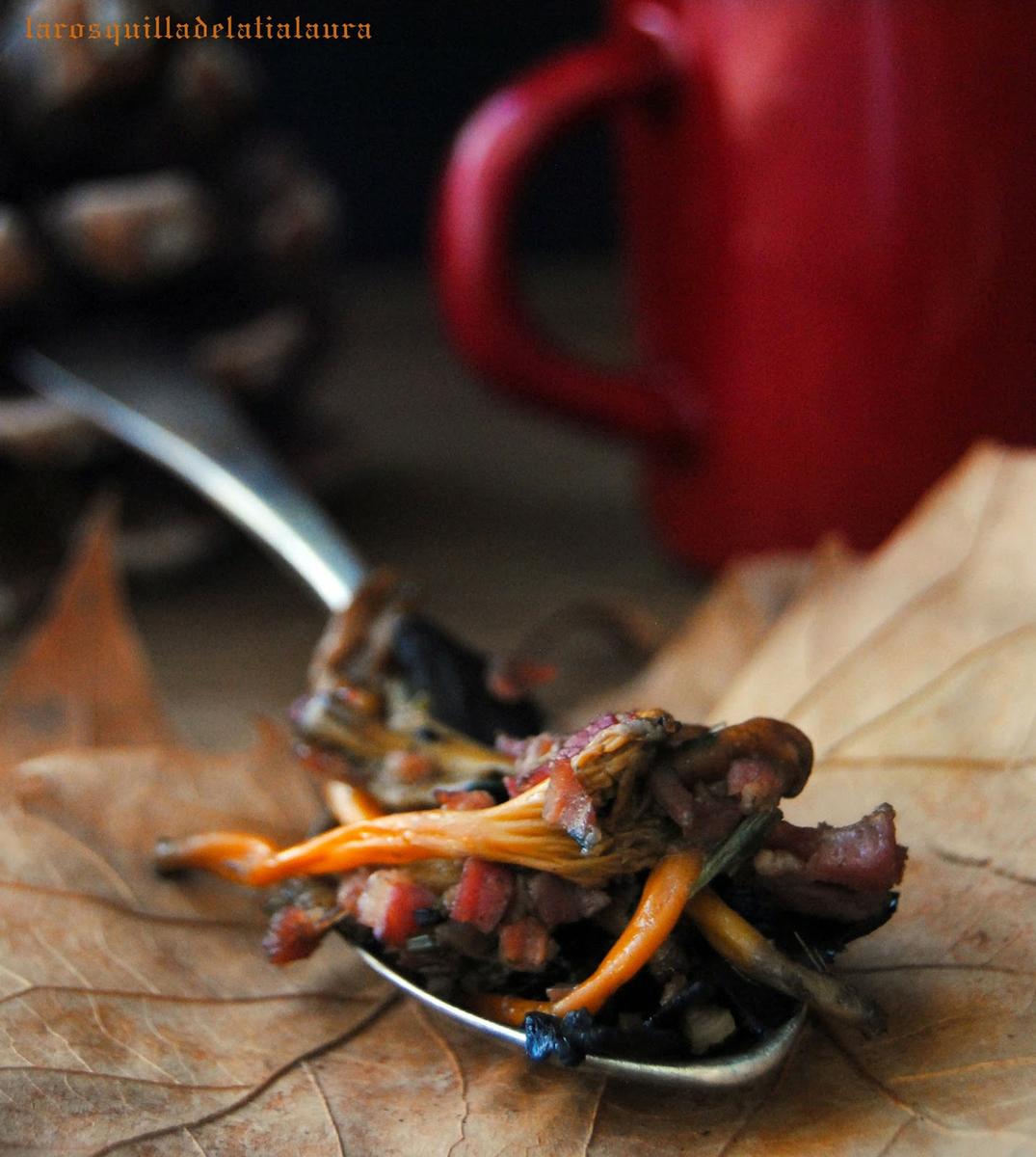1 cucharadita colmada de trufa triturada con aceite de oliva (en Lidl-Marca Deluxe)*Salteado de setas