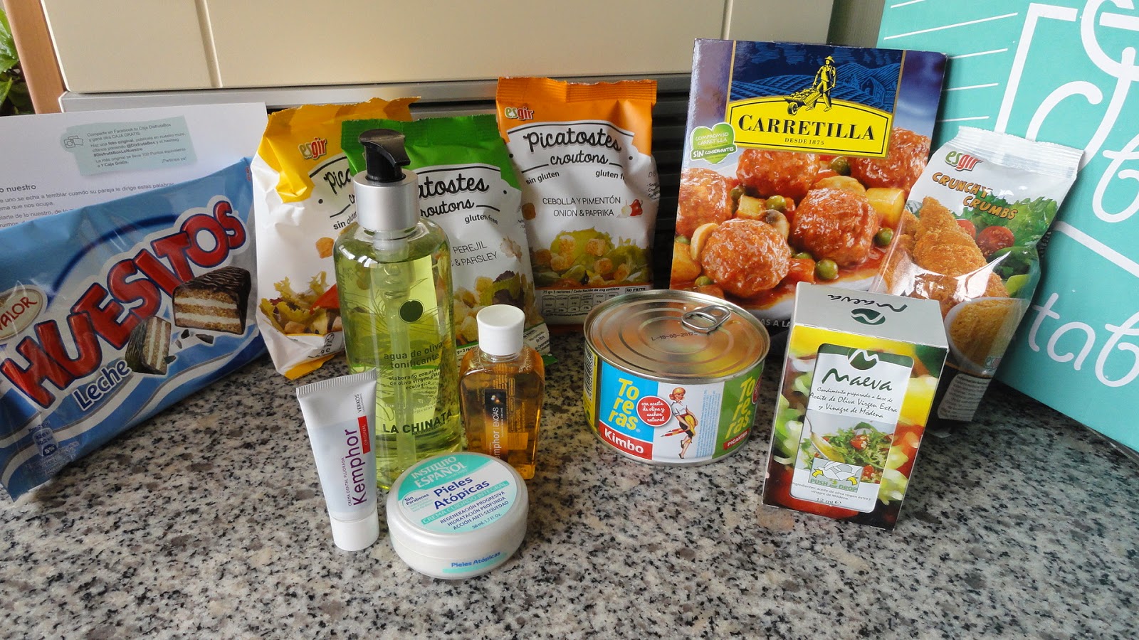 En este caso he aprovechado para servirla con picatostes sabor cebolla y pimentón que incluía la última caja disfrutabox . Esta caja la han titulado "Hablemos de lo nuestro" ya que son todos productos españoles, unos clásicos de toda la vida, y otros muy novedosos. Como siempre son productos que recibimos en casa por 15,91,.â?¬ al mes, pudiendo dejar la suscripción cuando queramos. La primera caja si indicáis el código marirecetas os la envían por 9,99,.â?¬. Mi caja incluye: