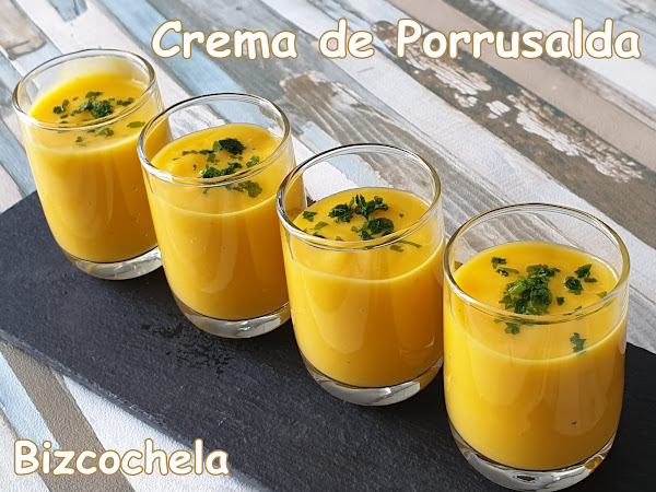 Pues, como me ha gustado esto de presentar en chupitos la comida, hoy os traigo esta deliciosa CREMA DE PORRUSALDA, un plato sencillo, fácil y con pocas calorías, perfecto para cuidar la línea!!!!