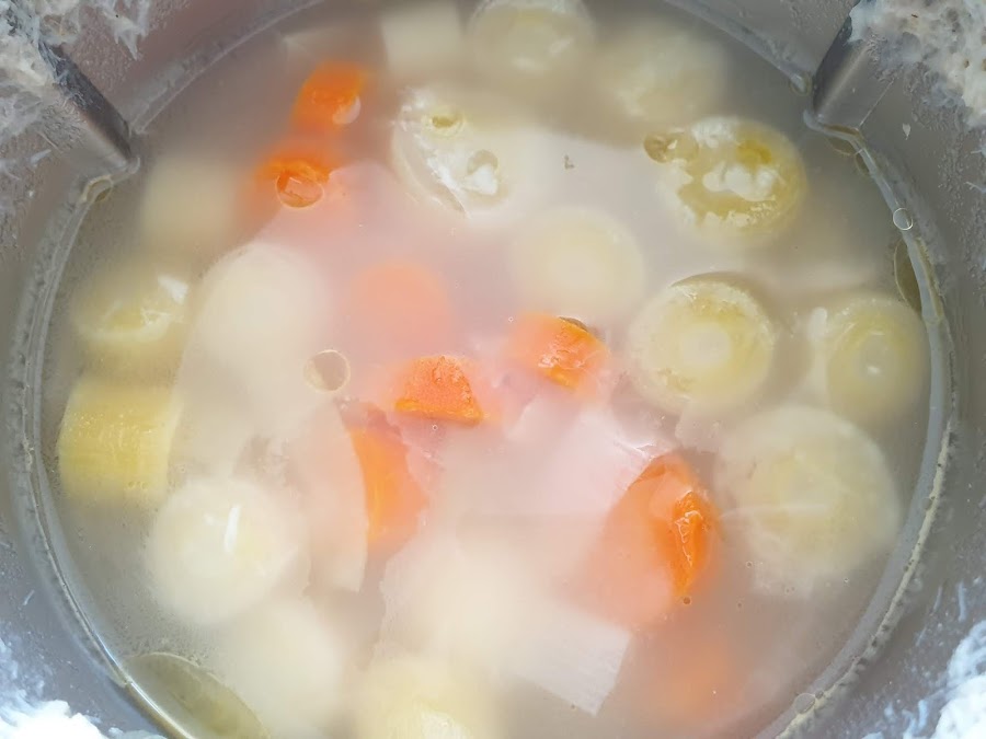 Y, aunque la receta original sólo lleva puerros y patatas, esta receta lleva además zanahoria.