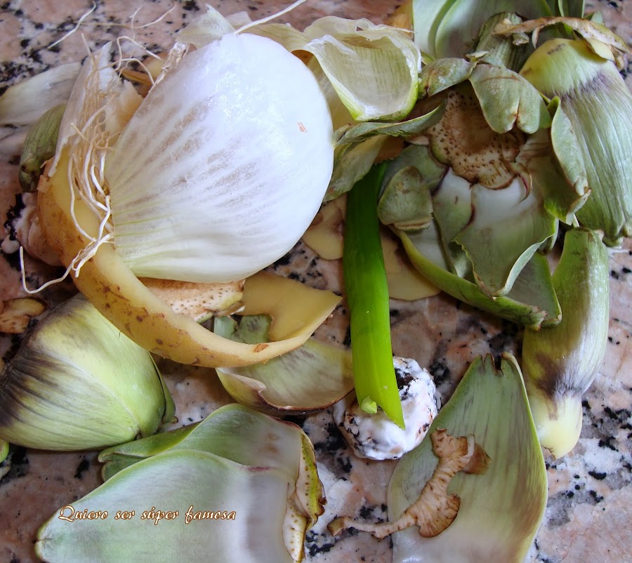 Lavar y cortar las hortalizas a trozos pequeños y la patata a rodajas muy finas. Los tallos más verdes de la cebolla y del puerro se pueden guardar en el congelador para hacer caldos para sopa y fondo oscuro para los guisos.