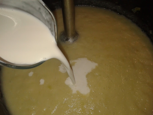 Una vez que se ha cocido todo, trituramos con la batidora para que nos quede una crema