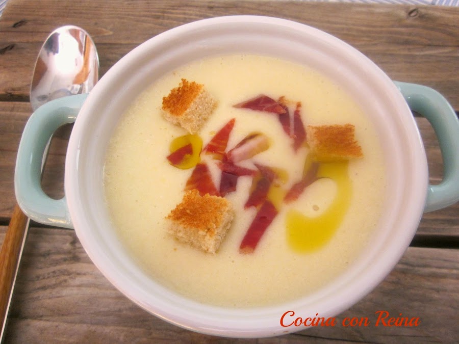 Dejar cocer durante 30 minutos, añadir la nata (crema de leche) en el último minuto, rectificar de sal y triturar hasta que quede una cremita fina.