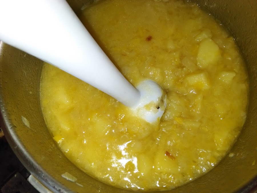 Removemos de vez en cuando, pasado el tiempo retiramos y pasamos por la batidora
