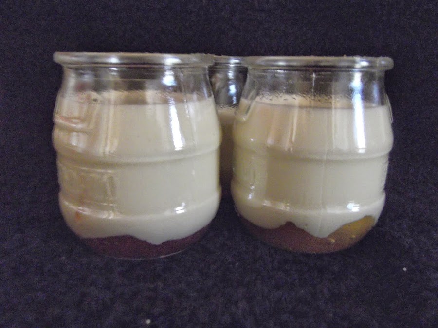 Por otro lado, colocamos en el fondo de los recipientes que vayamos a utilizar, en este caso he empleado unos pequeños vasos, un poco de la mermelada que más os guste, yo hice unos de fresa y otros de melocotón. Echamos por encima la crema de queso y los metemos a la nevera por un mínimo de cuatro o cinco horas, aunque se puede hacer de un día para otro. Como decoración yo he utilizado fresas, hay que aprovechar ya que estamos en temporada, y unas bolitas de chocolate.