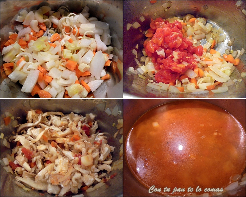 4.Cubrimos con el caldo elegido, sea de verduras o de pollo, y dejamos que se haga unos 20 minutos más o menos.