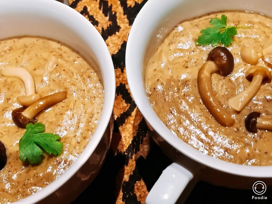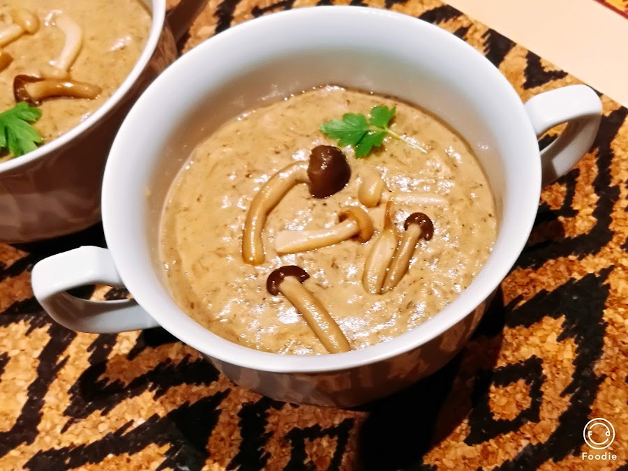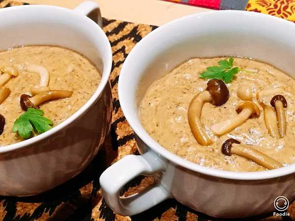 - Regamos con el caldo caliente y dejar hervir 15 minutos. Triturar, salpimentar y servir decorando con las setas reservadas.
