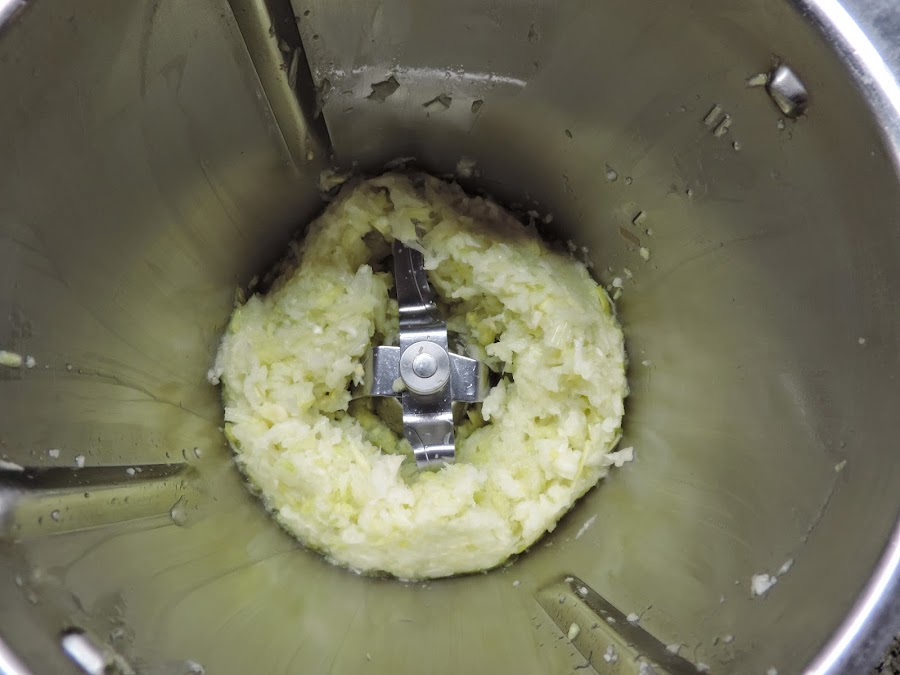 Dejamos templar un poco y trituramos 30 minuto, velocidad progresiva 7-10.