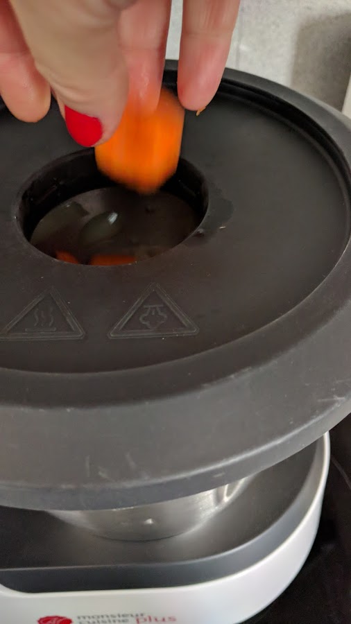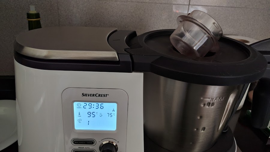 2.- Mientras pelamos y partimos las zanahorias. Como aún estará funcionando la máquina añadimos por el bocal