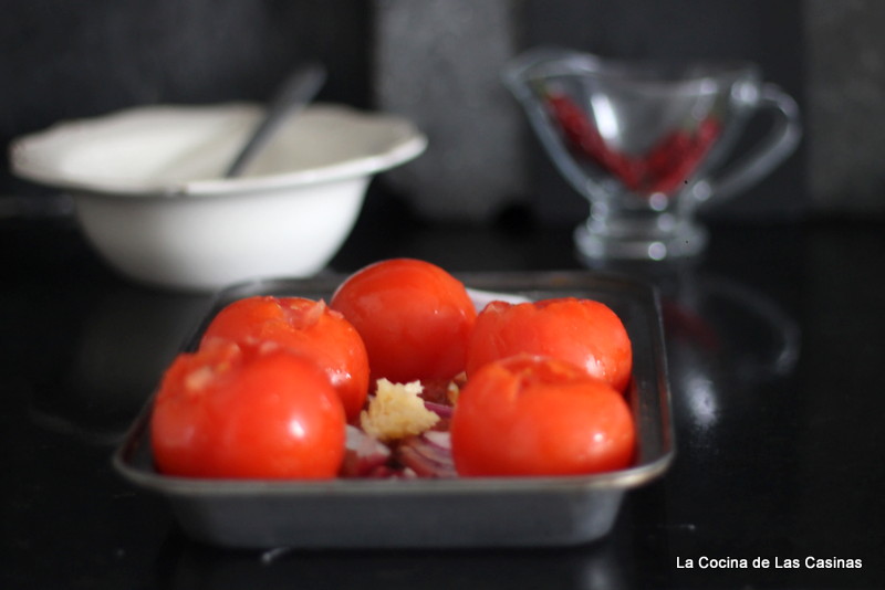 Introduce en el horno que has precalentado a 180º durante media hora o hasta que los tomates estén pochaditos.