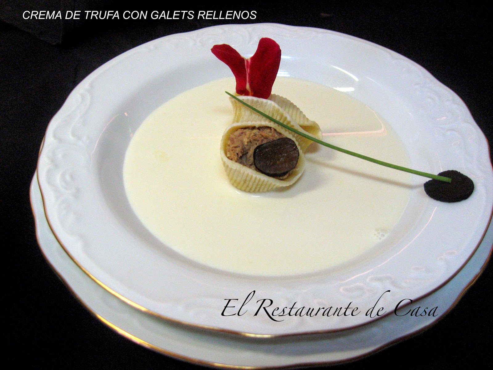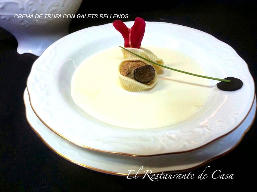 Hola de nuevo, hoy os queremos traer el plato que para mi es el mejor de toda la temporada, una sencilla crema de trufa con galets rellenos, una verdadera delicia. En este caso no os diré como casi siempre que el plato es fácil, aunque tampoco deberíamos considerarlo demasiado difícil de realizar, aunque lo que sí podemos afirmar es que es muy laborioso, aunque creo que el resultado merece la pena, así que espero que lo probéis de hacer y que me contéis que os ha parecido.