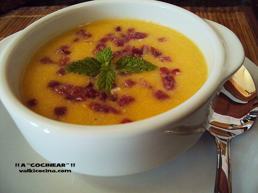 Como has visto muy fácil, .. si quieres puedes hacerla un poco más especial añadiendo los picatostes o trocitos de jamón. El "toquecito" de la hierbabuena, aparte de vistoso, le va muy bien.