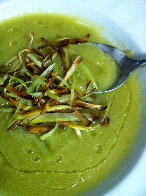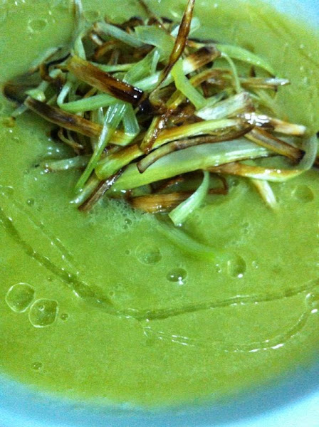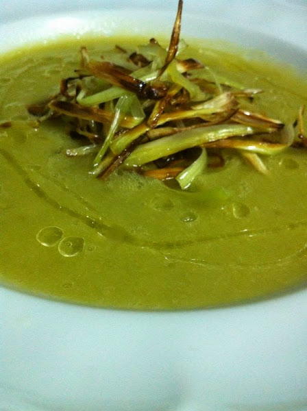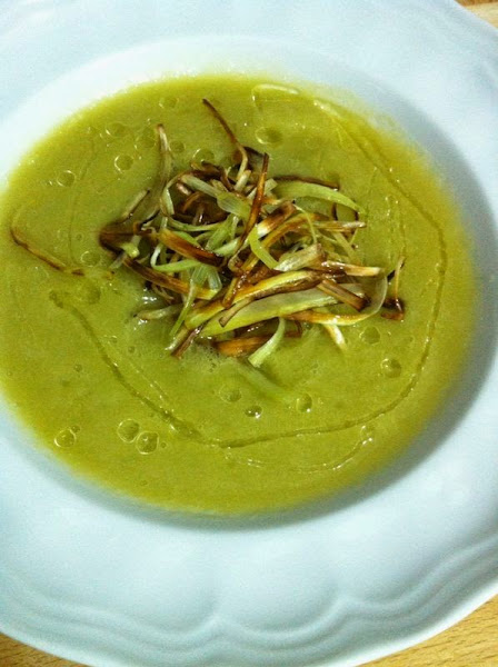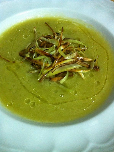 Y una vez este batida la crema y rectificada de sal, añadiendo mas si es necesario y con el puerro frito, solo nos quedara un paso...