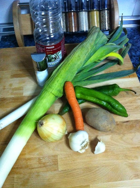 Bueno bueno, hoy os traigo una receta, de esas que sirven para aprovechar la verdura que nos queda en la nevera. En mi caso, tenia unos pimientos verdes, una zanahoria, una cebolla, unos puerros...los cuales, llevaban unos días en el frigo.
