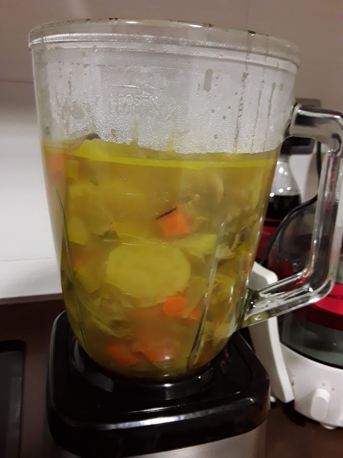 removemos y tapamos, dejamos a fuego medio durante 20-30 minutos, cuando lleve 15 min. probamos de sal y si le falta añadimos al gusto, cuando veamos que la patata este blanda retiramos del fuego, dejamos que repose 5 minutos y procedemos a batir bien con batidora de vaso y si no tenemos con batidora de brazo, y a sólo falta servir y si os gusta podéis acompañar con picatostes de ajo, son un buen acompañamiento, buen provecho