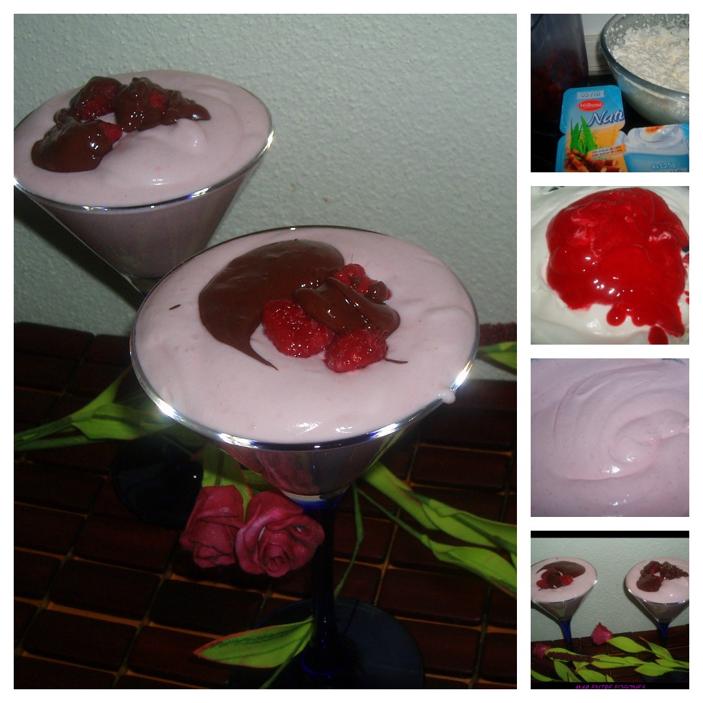 Al postre no le he puesto azúcar porque los yogures ya eran bastante azucarados pero si sois muy golosos podéis añadirle a la nata (crema de leche) todo el azúcar que os guste.