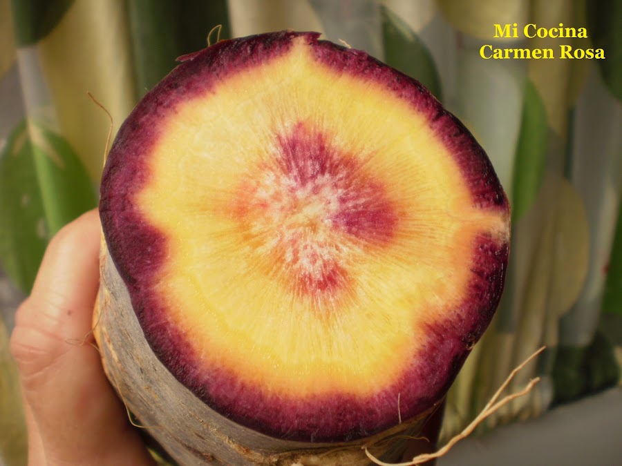 Su peculiaridad no estriba solamente en su color violáceo, su fascinante piel, su corazón púrpura y amarillo, debido a su genuinidad, es crujiente y un poco amarga cuando se consume cruda y más dulce cuando se consume cocinada o procesada naturalmente.