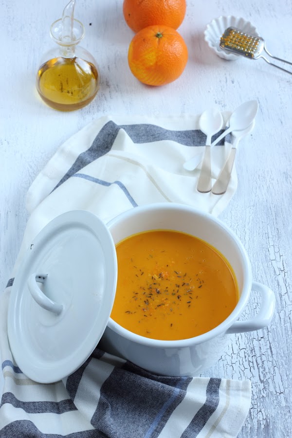 Pues esta crema es un buen ejemplo de ello, ya que se trata de una crema muy sencilla ya que la calabaza y la naranja son ingredientes muy comunes que siempre solemos tener a mano y por el simple hecho de sofreír un poco de comino, tomillo y pimienta de cayena junto con un ajo y añadirlo a la crema conseguimos una mezcla de sabores muy interesante y buenísima.