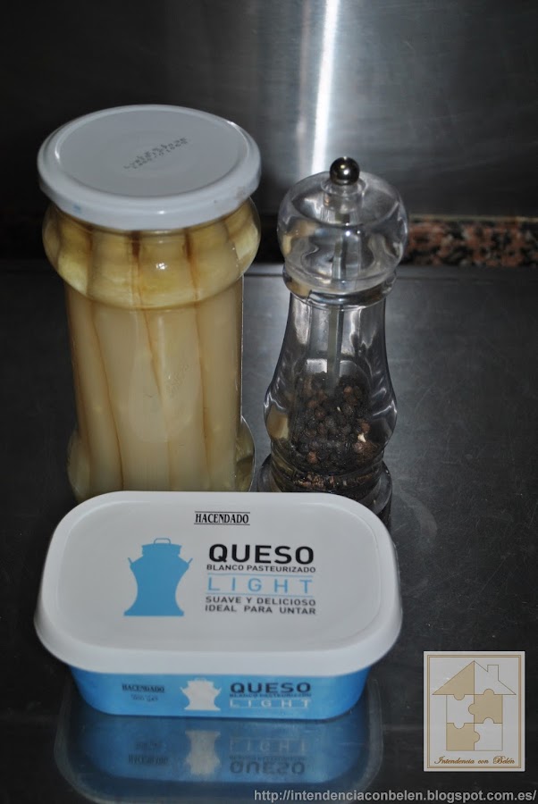 Añadimos al liquido los espárragos troceados, el queso, una pizca de nuez moscada, pimienta negra y una pizquita de sal.